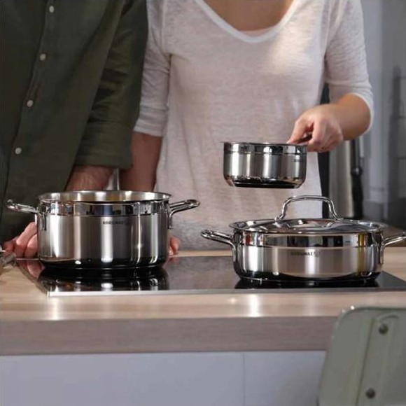 سرویس قابلمه کرکماز مدل A1089 دارای طراحی کفه پایه کپسولی 3 لایه است که باعث می شود که حرارت به طور یکنواخت توزیع شود و به تمام قسمت های قابلمه برسد و غذا یکنواخت پخته شود و در زمان و انرژی صرفه جویی شود. داشتن پایه القایی در این سرویس موج می شود قابل استفاده بر روی انواع اجاق ها شود.