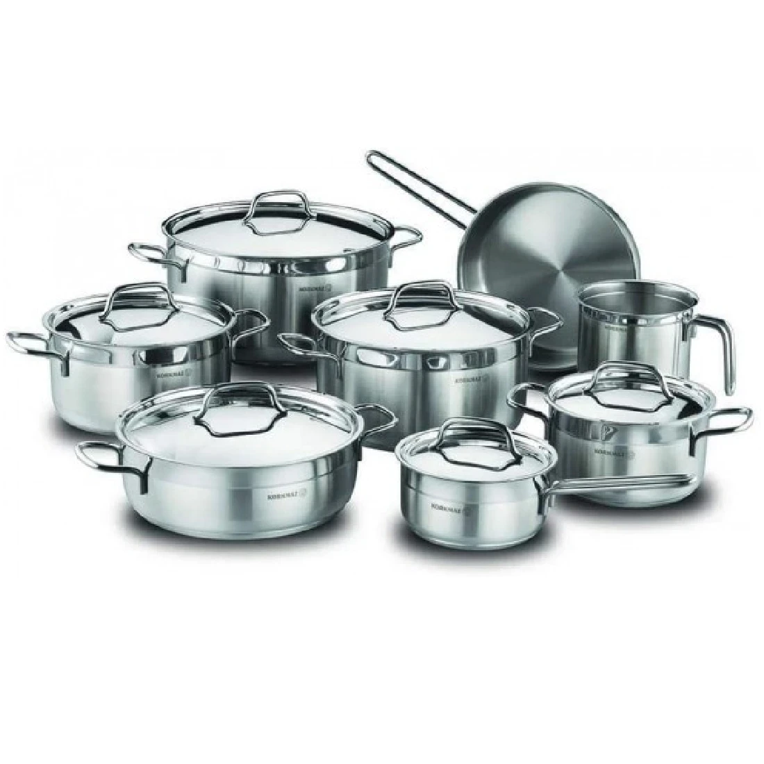 سرویس قابلمه 14 پارچه کرکماز مدل A1089 محصول بی نظیر برند معتبر KORKMAZ کشور ترکیه است. این سرویس زیبا زینت بخش آشپزخانه و بر طرف کننده تمام نیازهای شما در آشپزی می شود. سرویس 14 پارچه آلفا گرانده کرکماز شامل 4 قابلمه با سایزهای 30*15، 26*13، 22*12 و 18*10 سانتی متر با ظرفیت های 11، 6.8، 4 و 2.5 لیتر است و دارای 2 ماهیتابه که یکی درب دار با سایز 26*8 و ظرفیت 4.2 لیتر و دیگری بدون درب با دسته بلند با سایز 24*6 و ظرفیت 2.7 لیتر است. همراه این سرویس یک شیرجوش درب دار با سایز 14*14 با ظرفیت 2 لیتر و یک شیرجوش دیگر با سایز 8*16 با ظرفیت 1.6 لیتر وجود دارد.