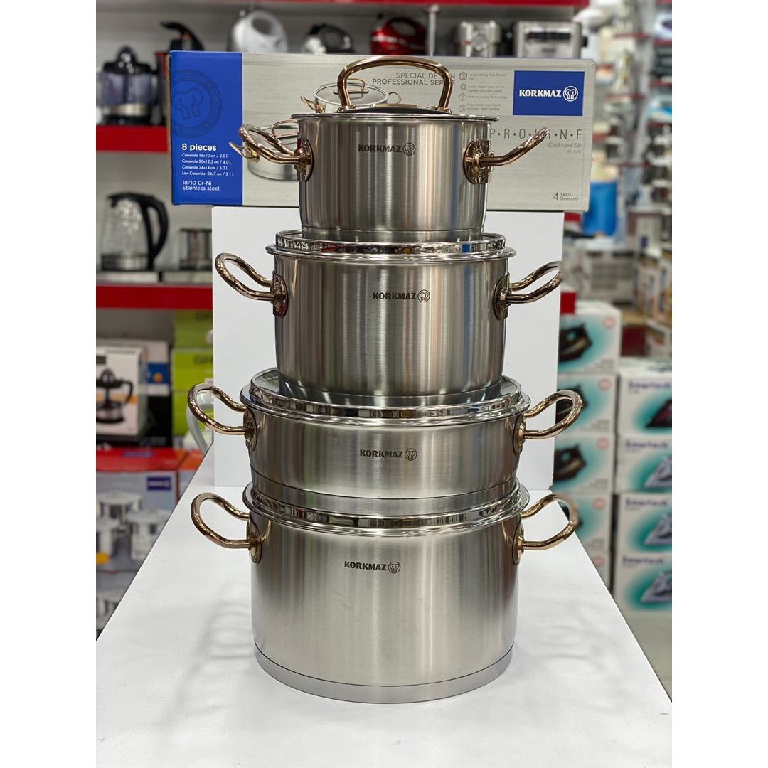 سرویس قابلمه کرکماز Proline A1149 یکی از محصولات برند korkmaz است . برند یکی از برند های محبوب ترکیه می باشد که به اروپا هم صادرات دارد. در سال 1985 برند لوازم خانگی و آشپرخانه کرکماز کار خود را شروع کرد و تا به امروز یکی از پرطرفدارترین و موفق ترین برند های جهانی است. این برند طراحی های بسیار زیبایی دارد و ظرافت خاصی در تولید محصولات آن به کار رفته است. محصولاتی از قبیل ظروف پخت و پز و لوازم برقی آشپزخانه از تولیدات این برند می باشند.
