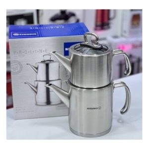 کرکماز Proline A274 یکی دیگر از محصولات زیبا و کاربردی برند معتبر کرکماز است. این برند نام آشنای ترکیه به واسطه دقت فراوان و ظرافت محصولاتش در مرحله تولید و هم چنین زیبایی و کاربرد فراوان محصولات در سال های اخیر توانسته است در بازار های جهانی و منطقه ای جایگاه ویژه ای برای خود پیدا کند. کتری و قوری korkmaz A274 دارای بدنه ای از جنس استیل ضد زنگ 18/10 کروم-نیکل است. وجود این 2 عنصر در ساختار این وسیله موجب مقاومت بالای آن در برابر حوادث و صدمات احتمالی و هم چنین شفافیت فراوان محصول شده است. این کتری و قوری به علت جلای فراوان در مرحله تولید دارای سطحی شفاف و صیقلی می باشند. کتری و قوری کرکماز 274 دارای ظرفیت کلی 3 لیتری که شامل ظرفیت کتری معادل 1.8 لیتر و ظرفیت قوری معادل 1.2 لیتر است در نتیجه برای پذیرایی در مهمانی ها و دور همی های شما وسیله ای بسیار مناسب است.